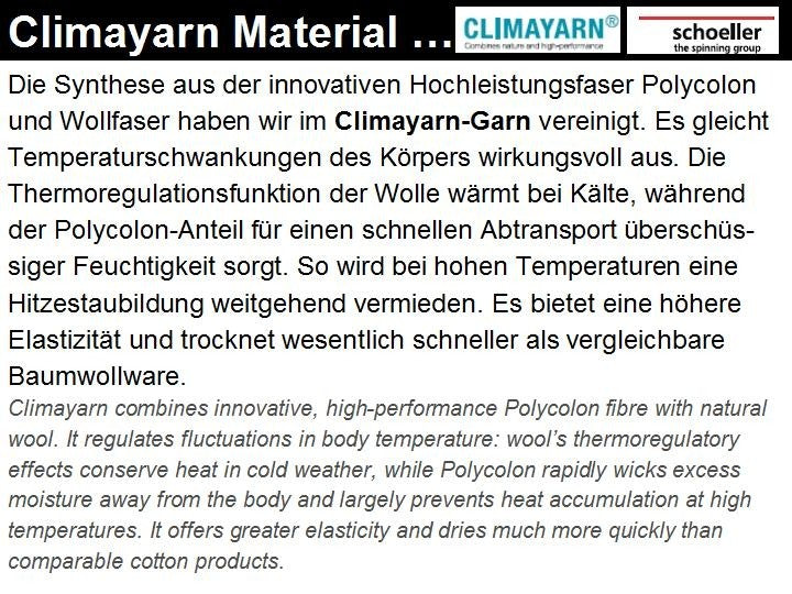 Climayarn® and merino wool blends offer optimal balance, providing excellent warmth and a cooling effect at high temperatures.
