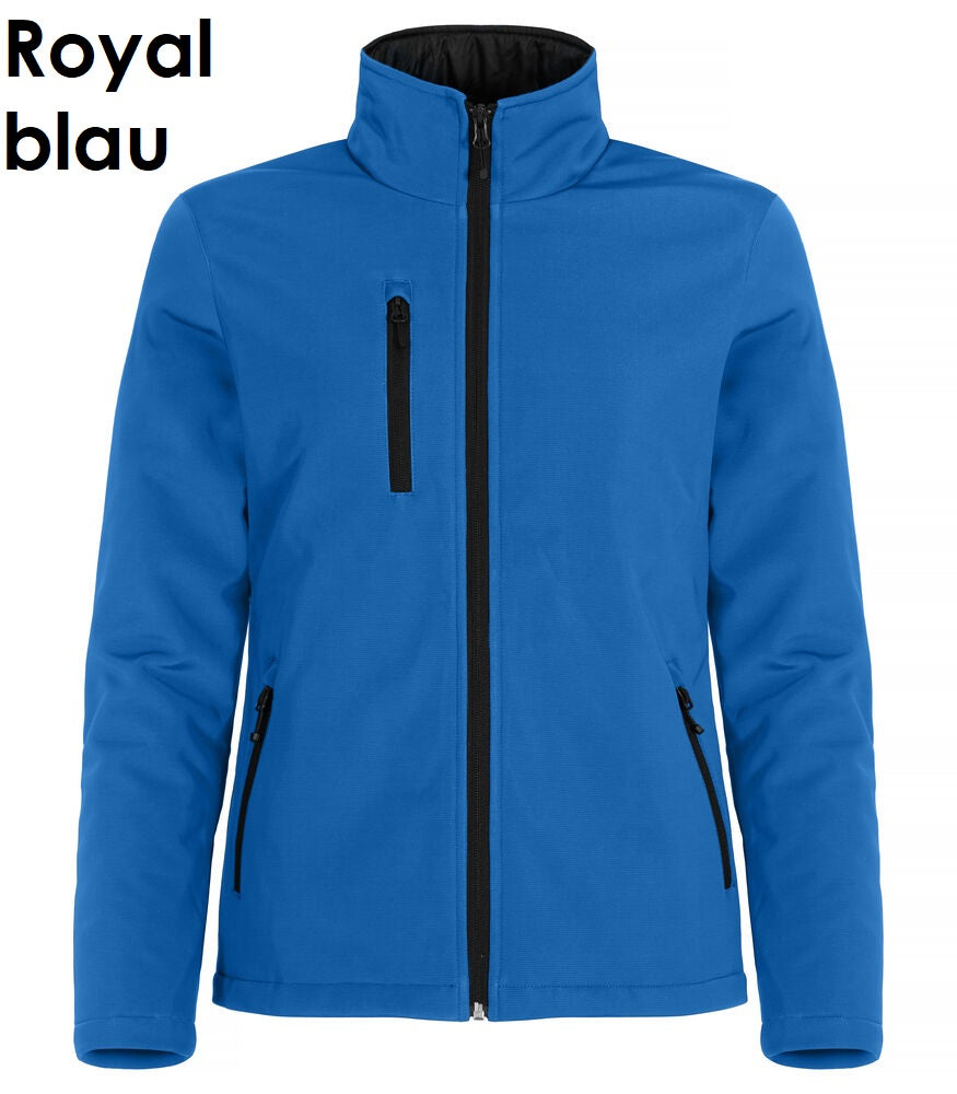 Eine klar geschnittene, wattierte Softshell-Jacke. Drei Außentaschen mit SBS-Reißverschlüssen und einer Innentasche. Inklusive schwarzem Innenfutter und Stick-Reißverschluss.