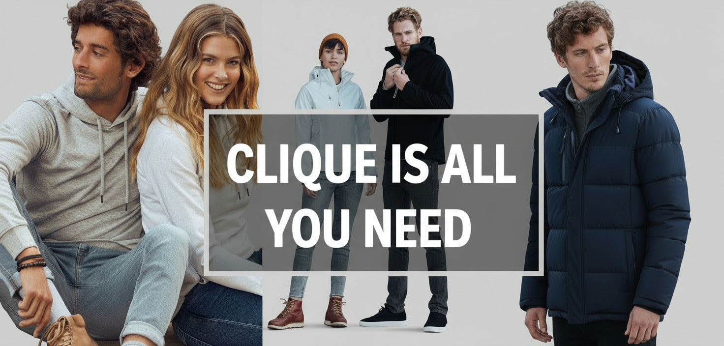 Unterwäsche, Socken, Shirts, Polos, Pullover, Jacken (Fleece, Softshell, Wetter-, Regen-, Stepp-, Daunen), Parkas, Mäntel und Accessoires.